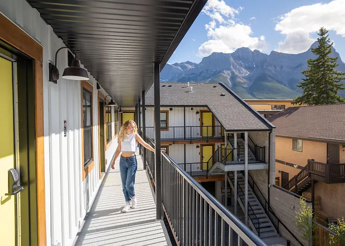 Basecamp Suites キャンモアホテルはCanmore, Albertaから歩いてたった5分で、ポリスマン・クリーク・トレイルから450メートルの距離の場所にあります。 駐車場もあります。